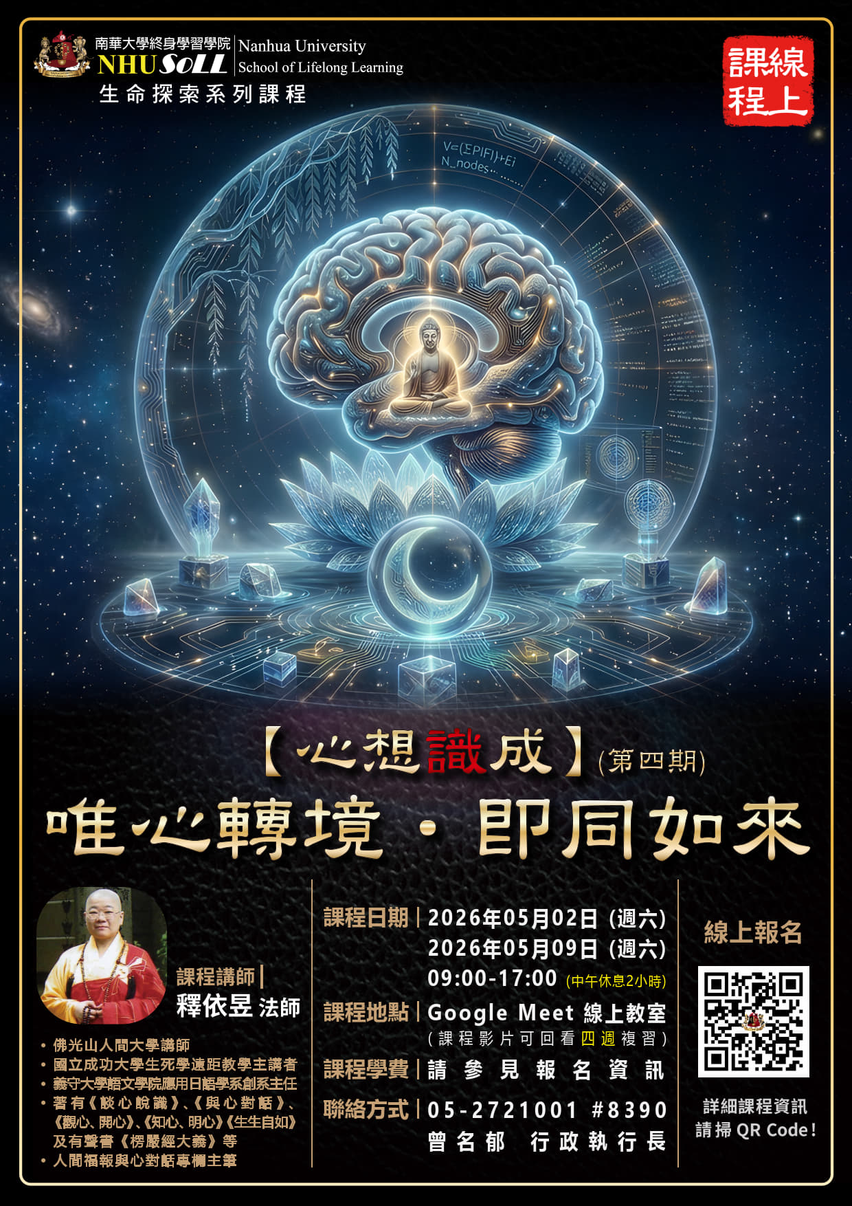 南華大學115年5月份開辦之「【心想識成】(第四期):唯心轉境.即同如來」