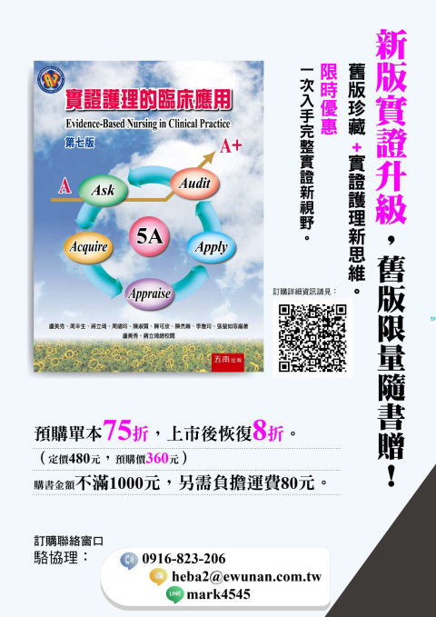 本書除了涵括實證護理的發展趨勢、進行實證護理臨床運用之5A循環的內容外,並加以介紹如何營造醫療機構之實證護理文化,與使用AI輔助5A步驟的倫理風險考量。最重要的是將「實證護理能力」,設計成臨床能力進階制度的學術能力要求,「實證護理與臨床能力進階制度結合」讓護生和護理師能快速學習N1至N4的學術報告撰寫。此外,也將實證護理撰寫分成A、B、C三類,進一步提升實證護理撰寫能力,並做為台灣護理學會規劃中的N3、N4以及進階護理師(NP、CNS)學術報告撰寫之指南。
